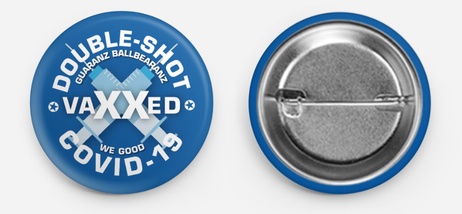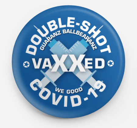 Two 1.5 inch Double-Shot Vaxxed pinback buttons. Free shipping with FREESHIP Coupon Code.